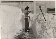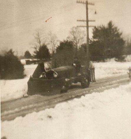 The Photo at right is of Inez, shoveling out the doorway to the cowbarn. I am reading this photo as I know things were when we were young. It appears that Inez who would have been 22yrs old in 1950, was doing what needed to be done (as she always did). Dad would start plowing (when he knew he would need to make two rounds in a big storm) going to peoples snow filled driveways. He always started with the