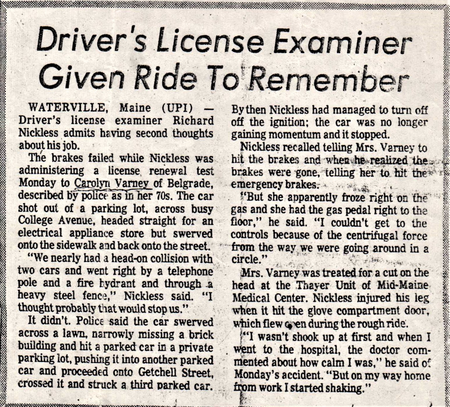 My Dad always read the Portland Press Herald every evening after the 14 to 16 hour day. I wasn't very old, maybe ten or twelve, when he showed me a picture of a black woman sitting, broom in hand, beside a cot of a sleeping young boy with a bandaged foot.