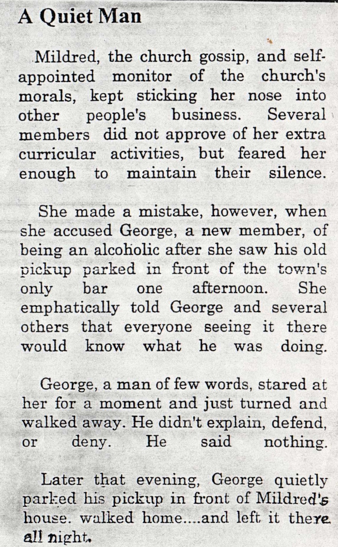 Once in a while my dad would sneak into the cellar for a drink. He even tried going throw a small door through the woodshed for a quick drink.