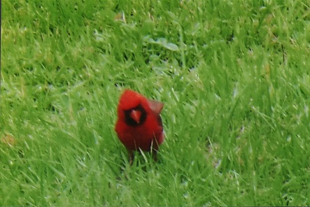 The Northern Cardinal with their conspicuous crest; cone shaped reddish bill. Male is red overall, with black face. Female is buffy-brown or buffy-olive, tinged with red on wings, crest, and tail. Juvenile browner overall, bill dull brown; juvenile female lacks red tones. The Cardinal, named after the red robes worn by Roman Catholic cardinals, has extended its range northeastward into southern Canada in recent decades. Cardinals are aggressive birds, and occupy territories year-round. Both sexes are accomplished songsters and may be heard at any time of year with their coe cue cue, cheer cheer cheer, purty, purty, purty, not just spring like most birds. Seeds are their main diet and insects are taken during their breeding season.