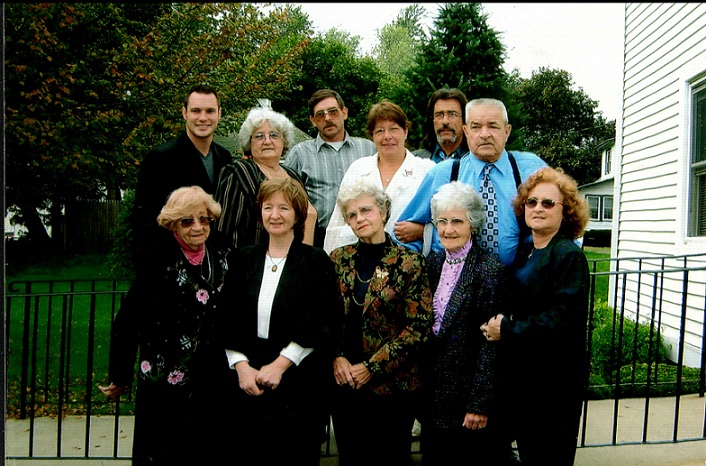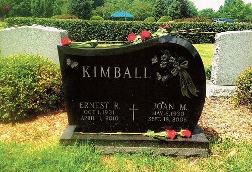 The photo above was taken at the funeral of Joan K., wife of Ernest R. Kimball in 2006. This the only picture I know of that shows all 5 children of Ernest L. and Jessie M. KIMBALL. This also includes, 5 grandchildren and 1 great grandchild. Front Row L. to R., Annie K. Smith, Annie's daughter, Rebecca A DeWitt, Hazel Austin, Inez C. Kimball, Inez's daughter, Judith A Miller. Second Row L. to R. Myra J. Sparkowich, Sharon Zimmerman and her father Ernest R. Kimball. We called Ernest by his middle name "Roger". Back Row L. to R. Myra's grandson, Mark J.Daniels, and son Frank M Sparkowich, and Ernest's son Eugene Kimball. Inez, Hazel, and Myra lived in Kennebunk. Inez has since passed away. The stone to the right is of Joan and Ernest R. Kimball, in 1910. They are buried in Rochester, NY.