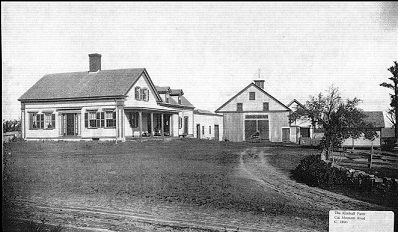 Above is a look at the farmhouse both old and new. The picture on the left is of the circa 1890 original farm house. George and Ernest Kimball purchased the "Jones Farm" about 1921. Ernest, later purchased George's share and continued farming until he retired. Ernest built a new house on the other side of the road and sold the family to his son-law and daughter. The house domer was added probable because of the increase in the number of children.