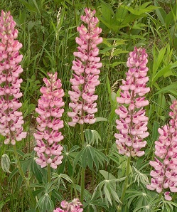 Below on the left is a beautiful Blue Iris. This Iris was given to me by a co-worker about ten years ago. Below on the right is Pink Lupins. This Lupin is self seeding as it appears at will, in other gardens. I think my bird friends, probably helps my garden variety.