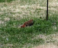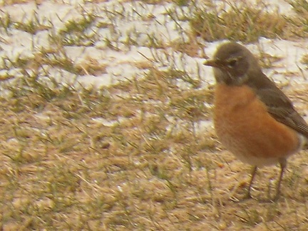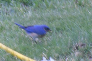 This bird appeared on my lawn just in time to have a picture taken. This was in early spring. I may be wrong, but I believe this bird is an Eastern Bluebird, but could be a Soutwestern or Western Bluebird. I did not get a good shot of the bill, so can't tell if it is a Eastern, Western or Southwestern Blue Bird. I will leave this for the experts to decide.
