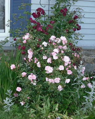 Below the Roses on the right are Memorial Roses in memory of the death of my daughter and on the left are Wild Roses on the banking behind my house and the Roses are beautiful and spredding very fast, but cannot be seen by passing traffic .