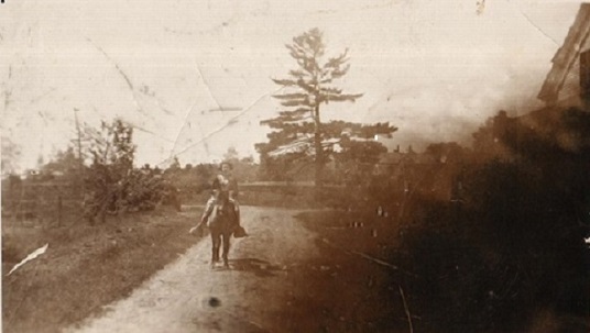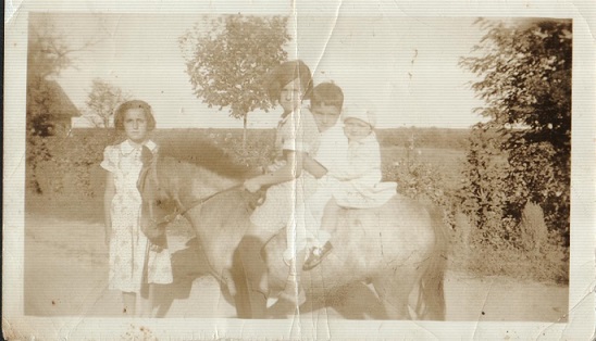 This is a picture of Inez coming in the farm driveway on Peter the pony. For whatever reason, she seemed to be the only one in the family that could handle him. Maybe because she spent more time with him.