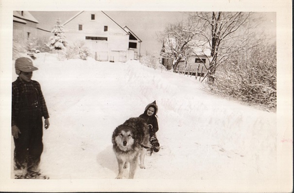 "Skippy the wonder dog." She herded the cattle, eliminated the woodchucks, babysat us kids and even gave us sled rides. Brother Roger is waiting his turn. Roger and I loved the snow. We had our own ski hill called Kennebunk Ski Slid.
